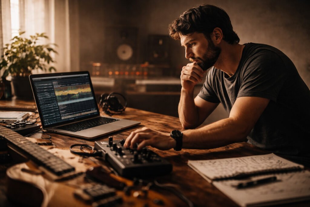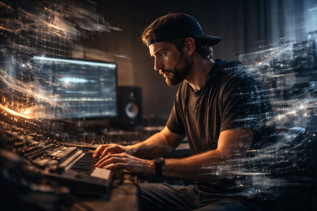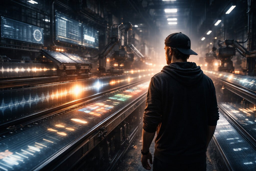 AI-ul face într-o secundă ceea ce tu faci în trei ore atunci când lucrezi din obișnuință. Îți arată cum sună muzica atunci când e doar pattern, fără miză, fără alegere, fără risc. Și exact asta doare. Nu pentru că îți fură ceva, ci pentru că îți demonstrează cât de ușor e să fii previzibil.